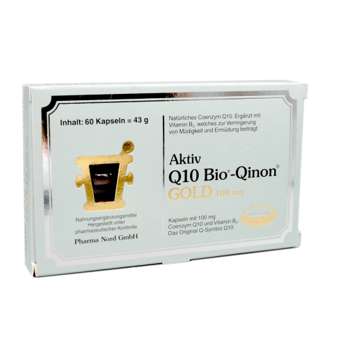 Q10 Bio-Qinon Gold von Pharma Nord ist ein Coenzym, das schon seit geraumer Zeit weltweit am meisten verkauft wird. Das Q10-Präparat besitzt eine hohe biologische Verfügbarkeit, kann vom Körper durch dessen fettlöslichen Eigenschaft jedoch nur schwer aufgenommen werden. Das Coenzym Q10 wird bei dem Produktionsprozess in Pflanzenöl aufgelöst. Danach wird es einer Wärmebehandlungunterzogen, was dazu führt, dass das Q10-Molekül bei normaler Körpertemperatur aufgenommen werden kann. Das Q10Bio-Qinon Gold erhält durch die komplette Auflösung des Q10-Moleküls somit seine hohe biologische Verfügbarkeit. Durch die jahrelange Forschung hat sich herausgestellt, dass die Einnahme von Coenzym Q10 über einen längeren Zeitraum hat keine Wirkung auf das Coenzym, das der Körper selbst produziert.